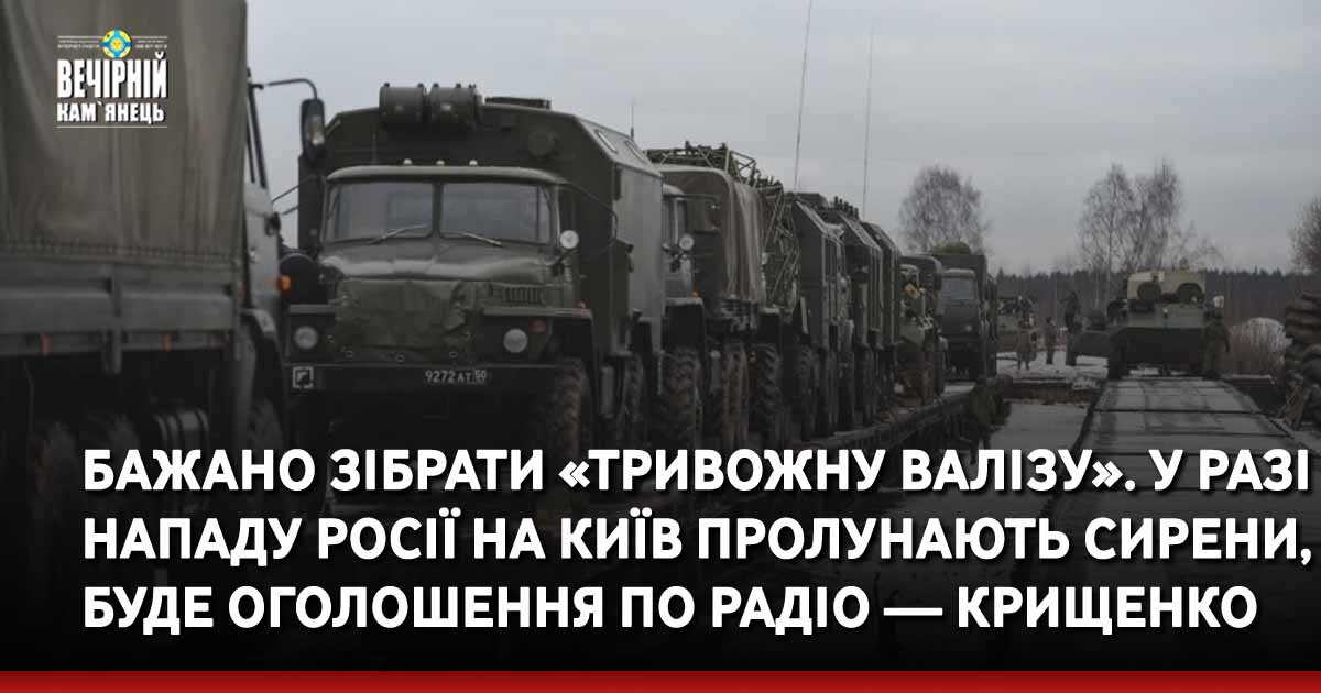 Заступник голови КМДА Андрій Крищенко заявив, що у разі нападу Росії на Київ прозвучать сирени, буде оголошення по радіо, а також прийде повідомлення на телефон.