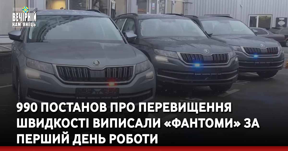 Так, за перший день роботи 4 автомобілів «Фантом» було виписано 990 адмінпостанов про перевищення швидкості.