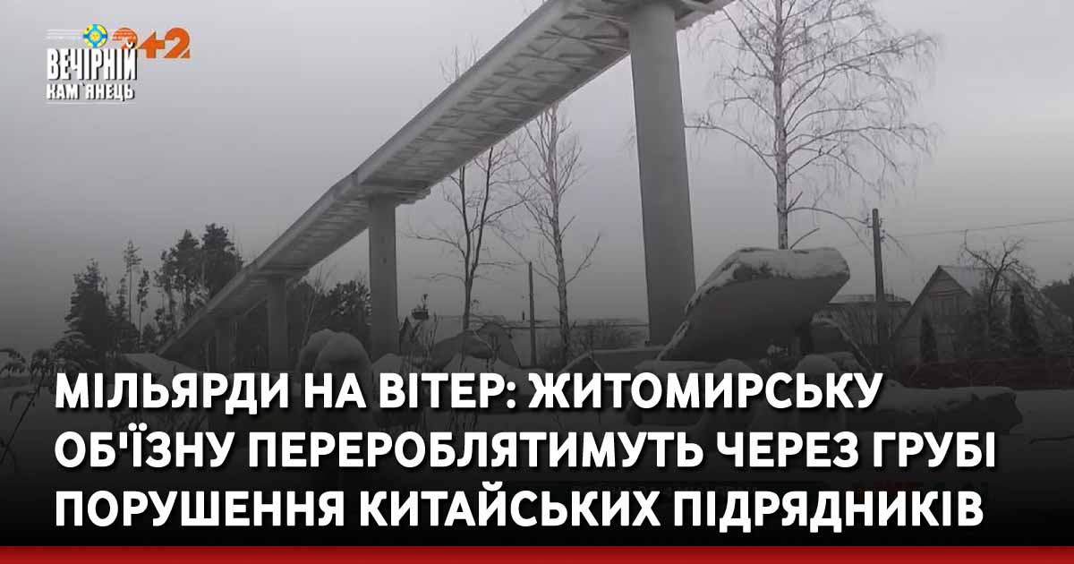 Житомирська об'їзна – частина стратегічної траси Київ-Чоп. 20 червня 2020 року китайські підрядники повинні були збудувати нову дорогу з ідеальним бетонним покриттям. За їхніми словами, дорожні роботи були виконані на 80%, а будівництво штучних споруд – на 60%. Але незважаючи на це, організація порушила всі терміни і Укравтодор розірвав з нею усі домовленості. А незалежна експертиза показала, що робили все з грубими порушеннями і дорога вже розсипається. Тепер китайсько-українську суперечку вирішують у міжнародному арбітражному суді.