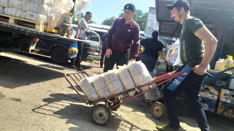 Сіль вивантажують великим партіями, а поруч вже у черзі стоять покупці.