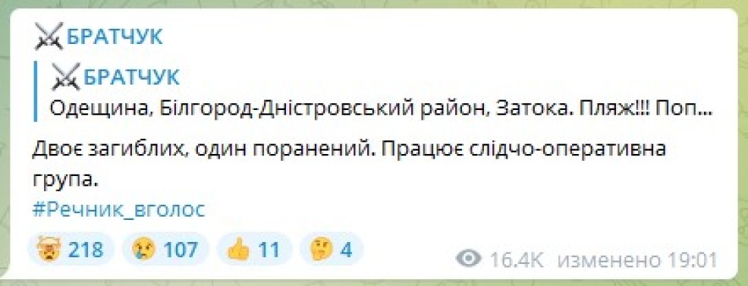 У Telegram-каналі Білгород-Дністровської міськради уточнили, що трагедія сталася на базі відпочинку "Рута" у Затоці.