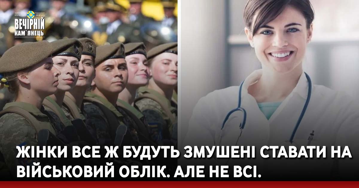 А що зараз? За новим законом всі жінки, які мають медичні або фармацевтичні спеціальності і придатні до служби за віком та станом здоров’я, мають обов’язково стати на військовий облік. Це медсестри, лікарки, стоматологині, ветеринарки, фізіотерапевтки, фармацевтки тощо.
