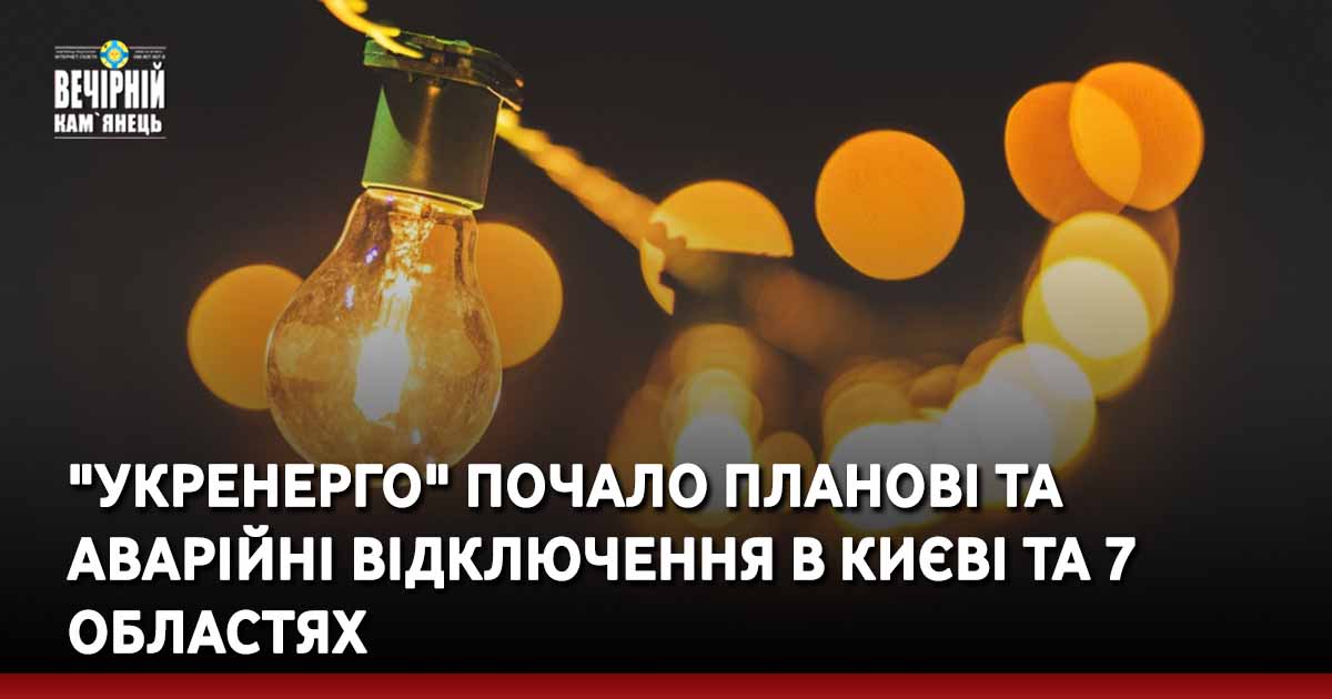 НЕК "Укренерго" попередила про планові та аварійні відключення 7 листопада з 6:00 до кінця доби у 7 областях, а також Києві, аварійні відключення можливі й в інших регіонах.