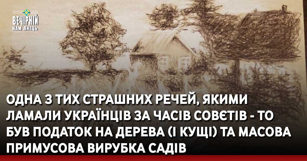 Коли податок на садок скасували, мій дідо - Петро Сікачина - заповзявся посадити садок. Це була його стрижнева мрія, життєва опора. Того ж року селянам-колгоспникам дозволили мати більші присадибні ділянки. І ось родина отримала рівніший наділ на город, а схил яру дозволено було засадити садком і використовувати як сінокіс. А сам яр - для стримання ерозії - засадити швидкоростучими деревами (дід посадив верби, осокори, вільхи, терносливи, а також ліщину й бузину). Ерозія припинилася. Загалом тоді по селу було висаджено багато дерев - лісосмуги між полями, стримуючі балки по ярах, ялини, верби, осокори, тополі, дуби. Це по суті врятувало село й поля довкола нього. Інакше б прийшли суховії.