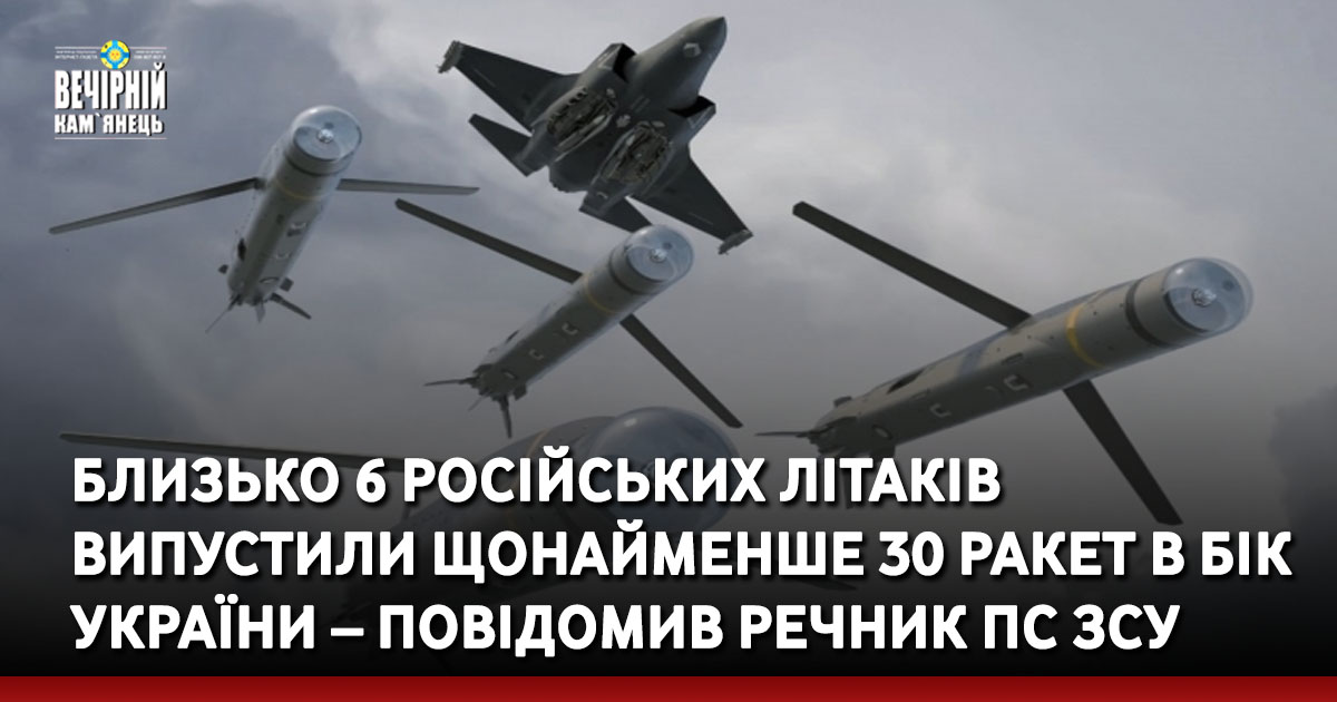 «Наразі маємо інформацію про те, що з Мурманської області був виліт близько 6 літаків ТУ-95МС. Щонайменше 30 ракет було запущено в бік України», - сказав Ігнат під час брифінгу в Military Media Center.