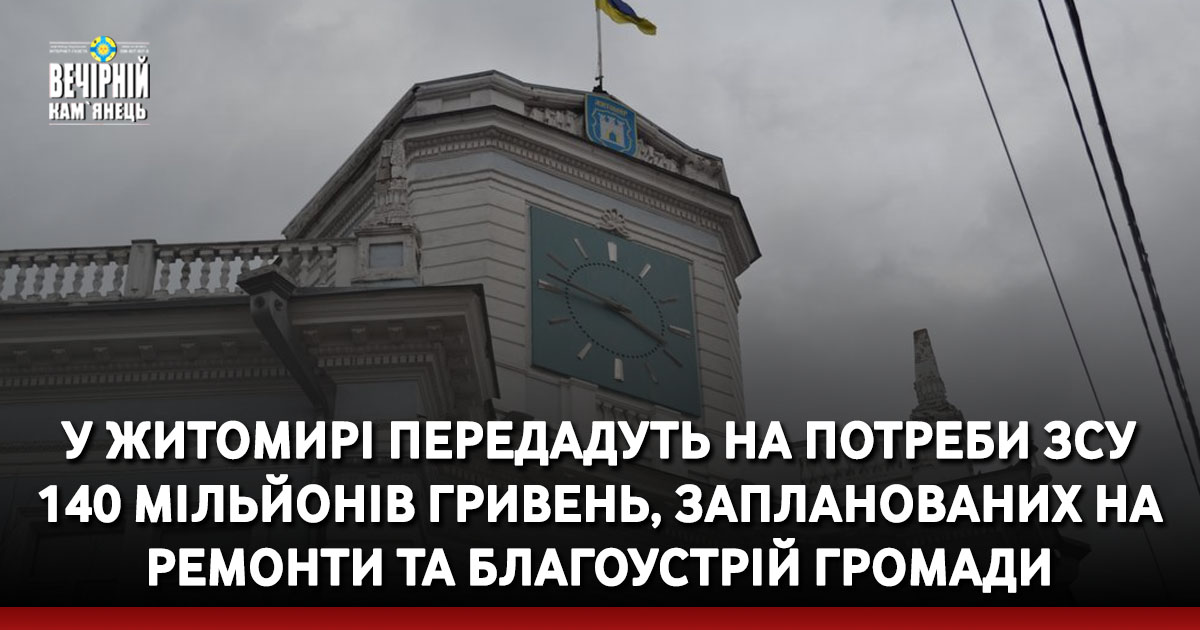Житомирська міська рада перекине на потреби ЗСУ 140 мільйонів гривень, які були заплановані на капітальні видатки та програми благоустрою в громаді.