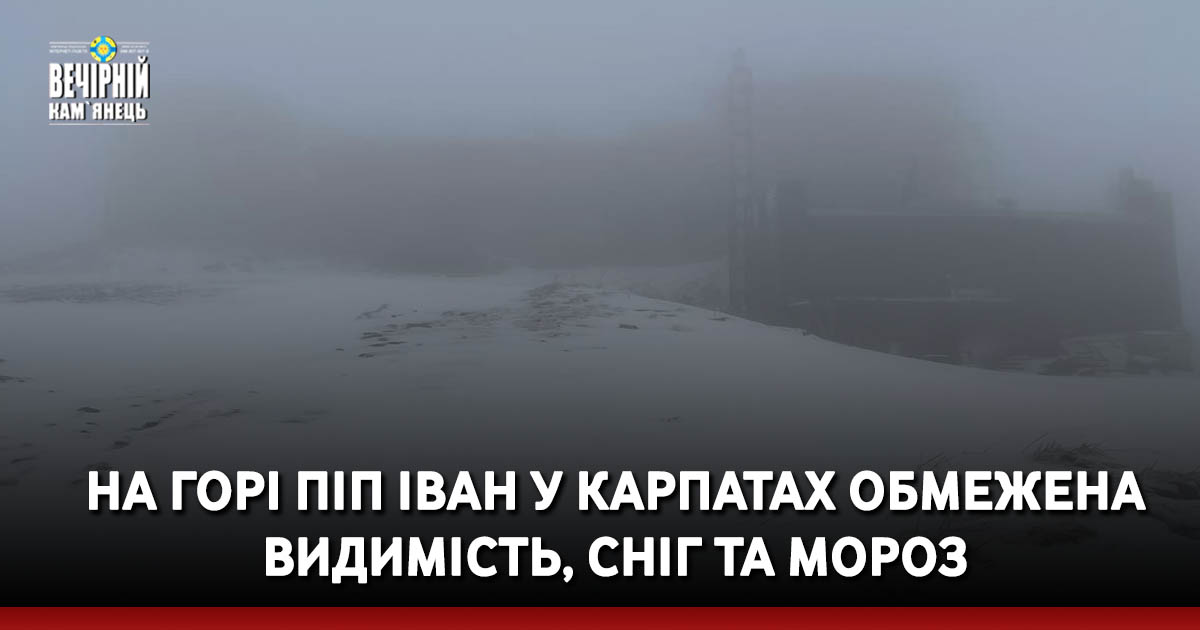 На горі Піп Іван у Карпатах температура повітря опустилася до 1° морозу. Рятувальники попереджають про обмежену видимість.