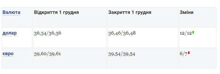 До закриття міжбанку курс долара виріс на 12 копійок у купівлі та продажу. Євро подешевшало на 6 копійок у купівлі та на 7 копійок у продажу.