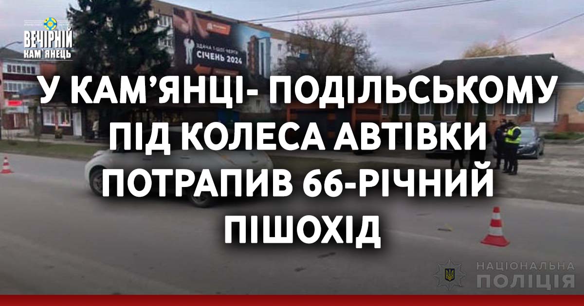 40-річний місцевий житель, керуючи автомобілем «Nissan Leaf», допустив наїзд на пішохода. Внаслідок події 66-річний чоловік отримав тілесні ушкодження та був госпіталізований до Кам’янець-Подільської міської лікарні.