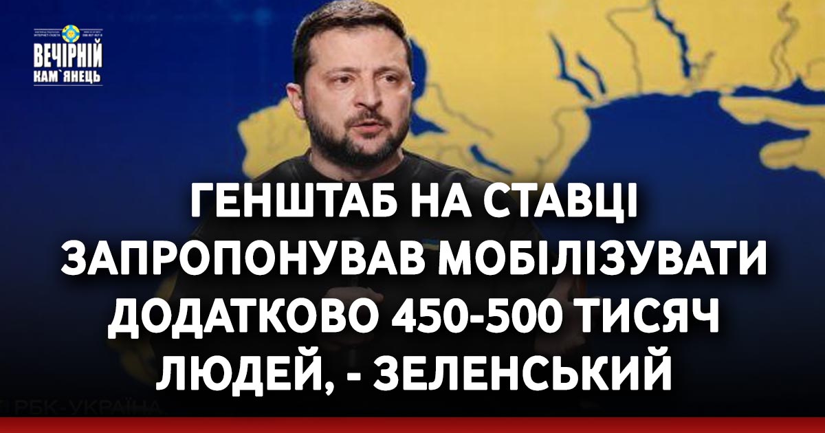 Генштаб Збройних сил України попросив додатково мобілізувати 450-500 тисяч людей. Це питання виносили на Ставці верховного головнокомандувача.