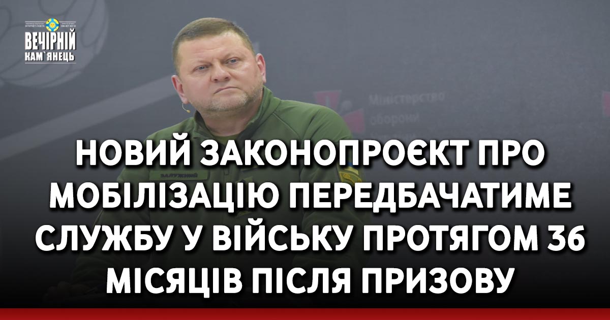 Валерій Залужний заявив, що разом із Міністерством оборони погоджено, щоб новий законопроєкт про мобілізацію передбачав службу у війську протягом 36 місяців після призову.