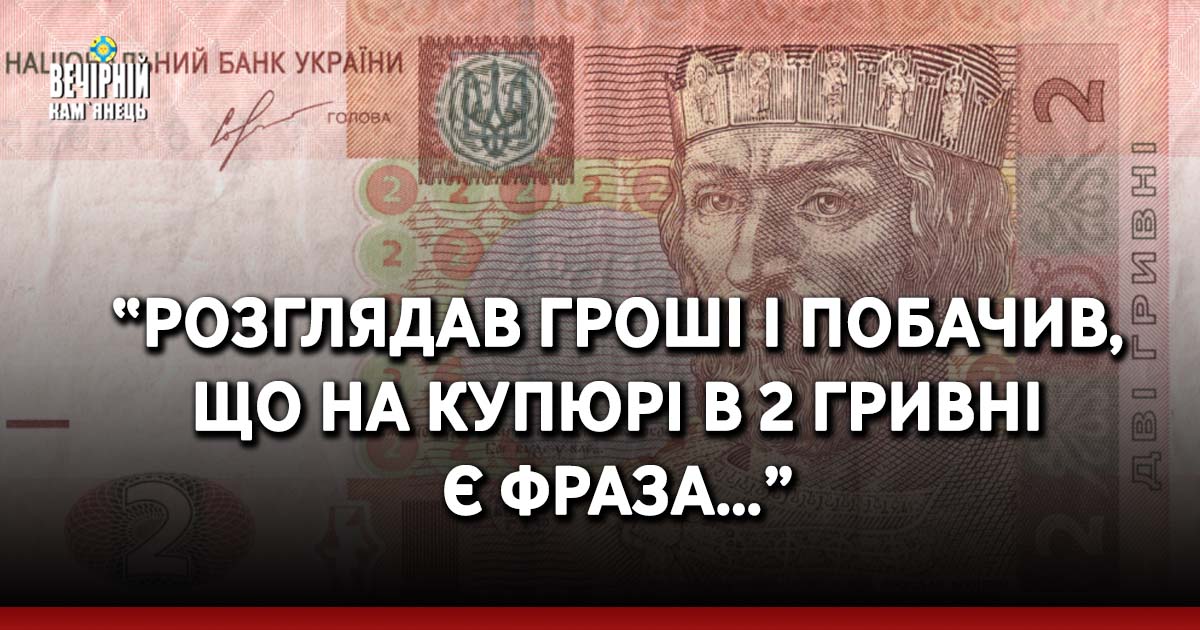 «Розглядав гроші і побачив, що на купюрі в 2 гривні є фраза: