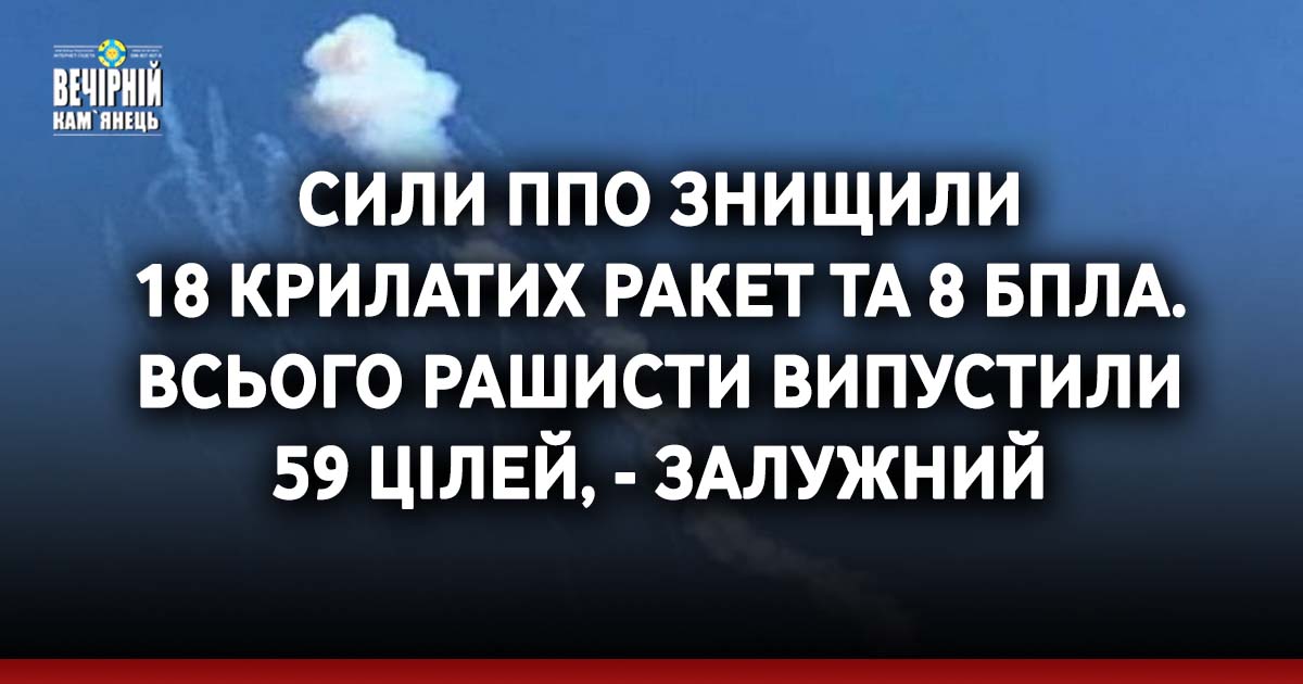 - 18 крилатих ракет Х-101/Х-555/Х-55", - підсумував Залужний.