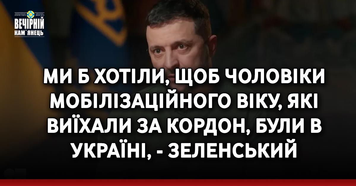 Президент Володимир Зеленський вважає, що не всі чоловіки мобілізаційного віку мають бути на фронті, проте вони мають бути в Україні.