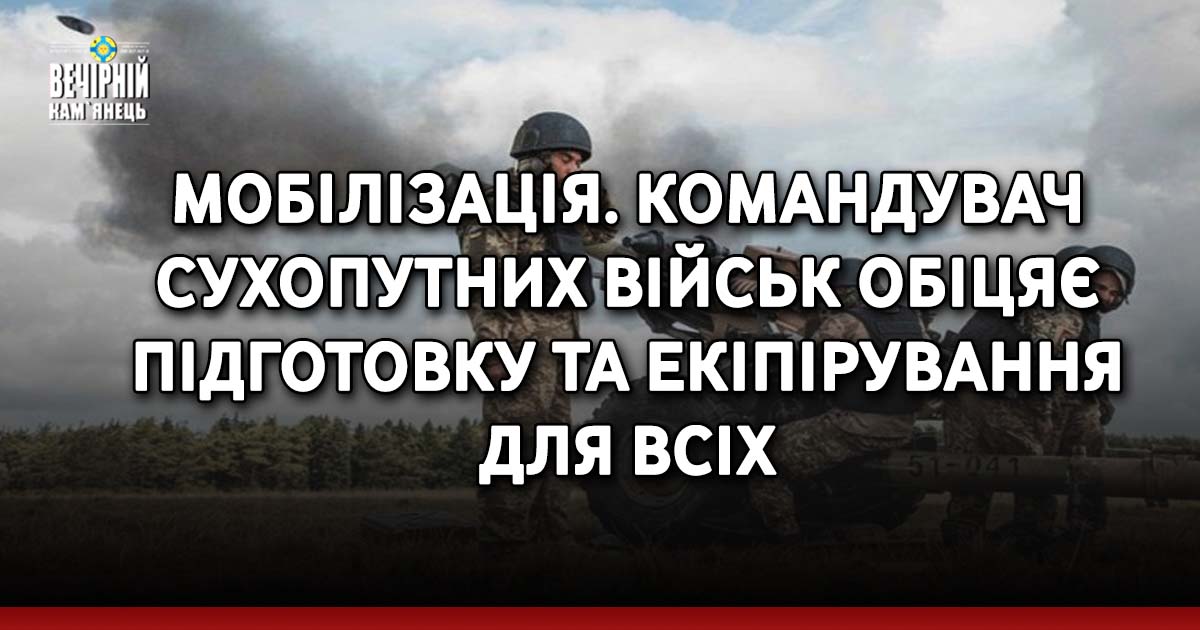 Командувач Сухопутних військ Олександр Павлюк пообіцяв підготовку та екіпірування для всіх мобілізованих українців. Про це він повідомив в інтерв'ю Радіо Свобода.