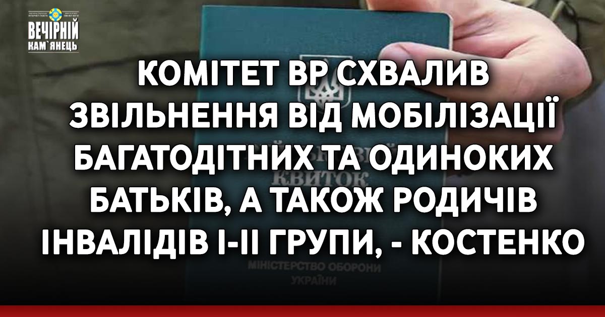 Він розповів, що Комітет ВР з схвалив звільнення від призову під час мобілізації таких категорій громадян: