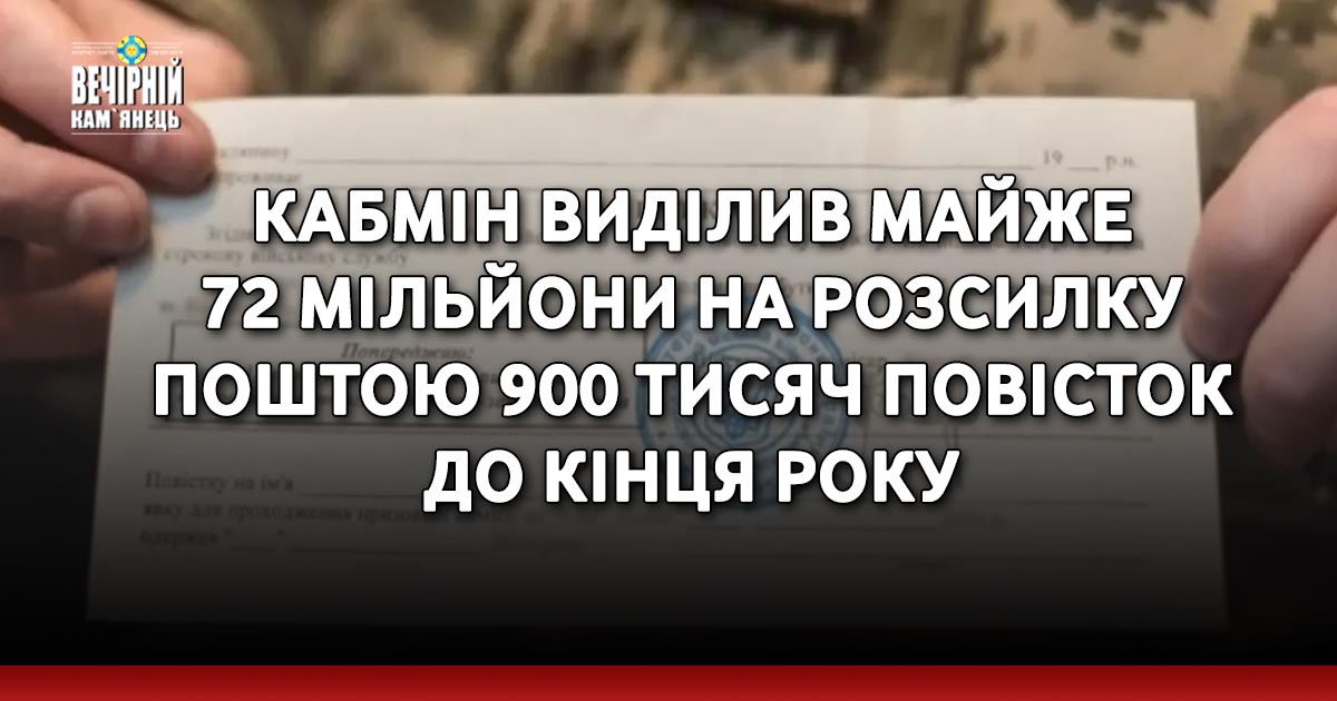 Кабінет міністрів виділив 71 мільйон 820 тисяч гривень на централізований друк 900 тисяч повісток до кінця 2024 року.