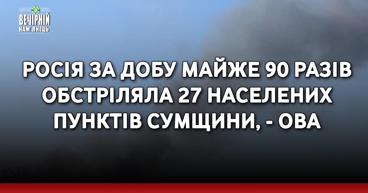 Протягом доби з 24 по 25 червня російські війська здійснили майже 90 обстрілів по 27 населених пунктах Сумської області.
