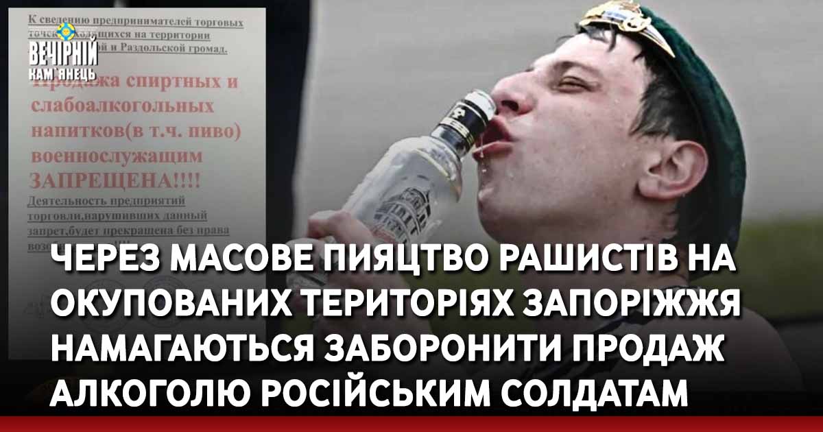 Особовий склад підрозділів окупаційної армії, що знаходяться на тимчасово окупованих територіях Запорізької області, відзначається масове зловживання алкогольними напоями.