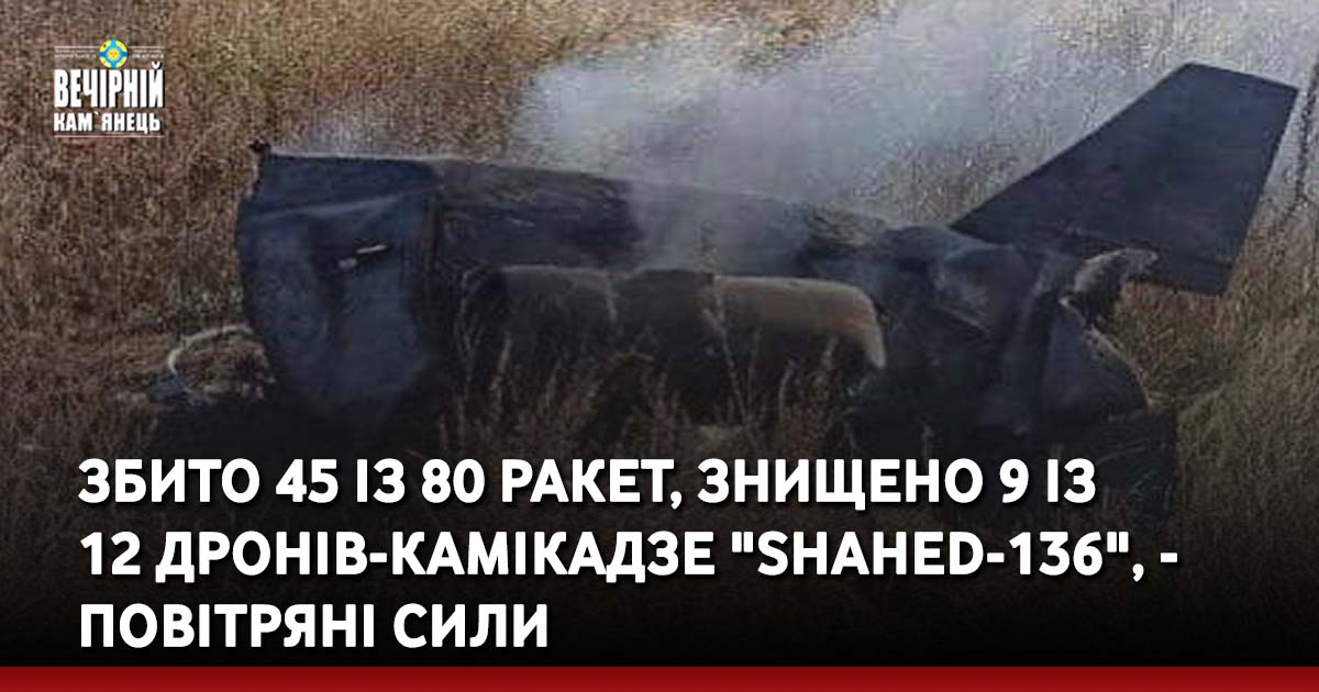 Крім того, протиповітряною обороною знищено 9 із 12 дронів-камікадзе "Shahed-136".