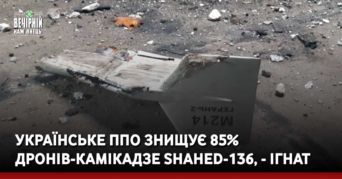 "Наша ППО знищує дедалі краще ворожі дрони. Кілька тижнів минуло відтоді, як ворог почав застосовувати дрони-камікадзе Shahed-136. Перший випадок збиття був у Куп’янську, де він летів один. Потім вони почали застосовувати дрони парами, потім групами, на різних напрямках, змінюючи курс, щоб обійти наші системи протиповітряної оборони... Якщо рахувати у відсотковому еквіваленті, понад 85% "шахедів" знищується на маршруті слідування", - сказав Ігнат.