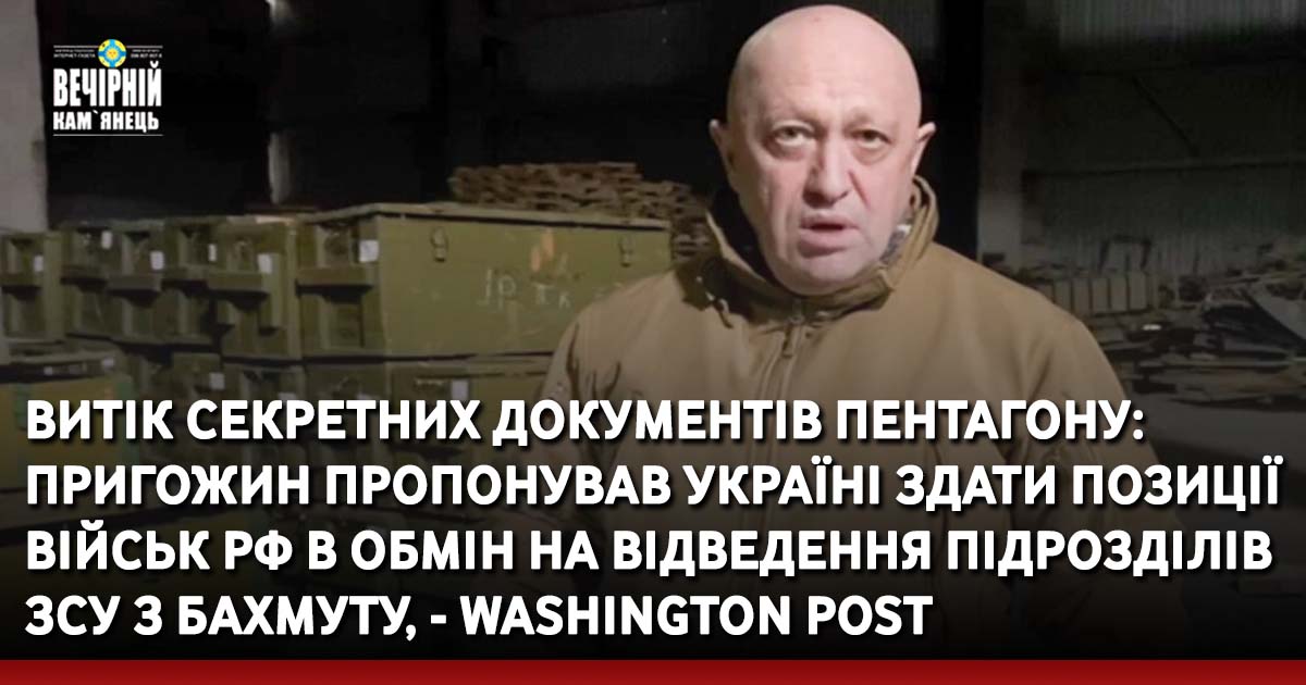 Засновник російської ПВК "Вагнер" Євген Пригожин нібито пропонував Україні в обмін на відведення підрозділів ЗСУ з Бахмуту, де його найманці зазнають великих втрат, розкрити дані про позиції військ РФ для атак.