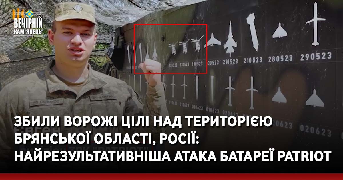 Українські Повітряні сили заявили, що розгром російської авіації у небі Брянської області РФ 13 травня було здійснено ракетами системи Patriot.