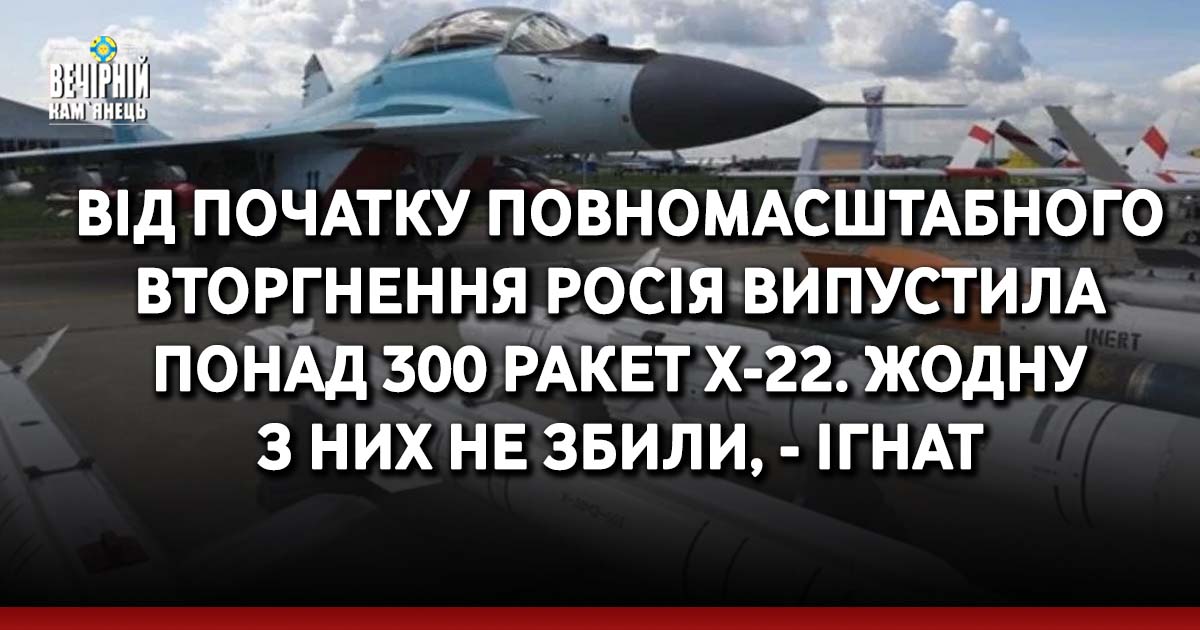 З початку повномасштабного вторгнення російський агресор випустив по Україні 300 ракет Х-22, жодна з яких не була збита засобами протиповітряної оборони.