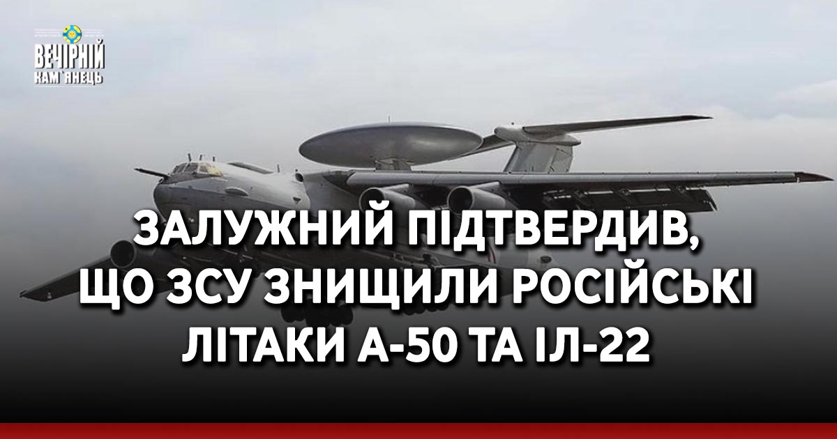 Головнокомандувач ЗСУ Валерій Залужний офіційно підтвердив, що військові Повітряних сил ЗСУ знищили літак РФ дальнього радіолокаційного виявлення А-50 та повітряний пункт управління Іл-22.