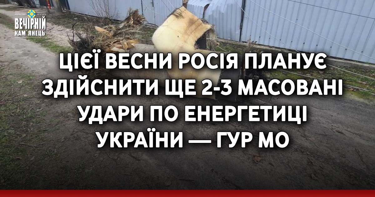 Представник Головного управління розвідки Міноборони Вадим Скібіцький поінформував, що росія планує провести ще кілька масованих ударів по енергетиці України цієї весни.