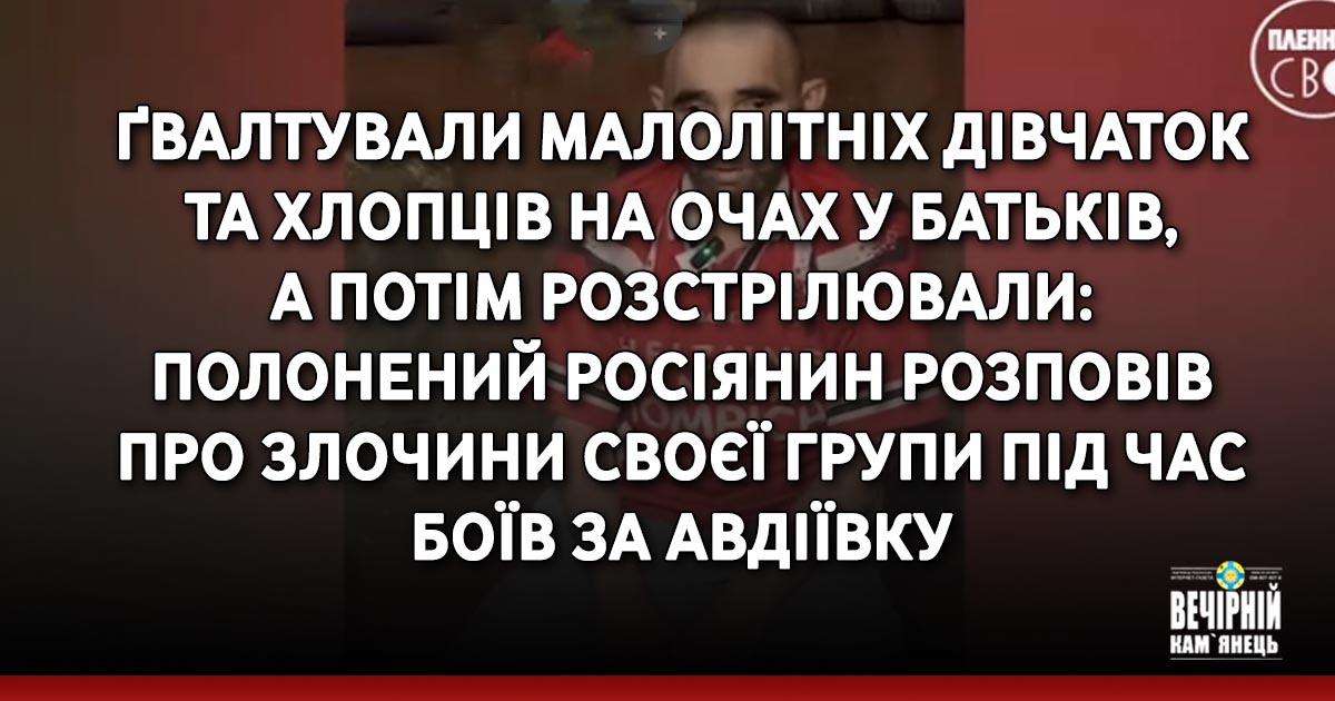 "Изнасиловали троих мальчиков, пять девочек, шесть женщин. И поставили их к стенке", - росіянин про злочини військових під час боїв за Авдіїівку.
