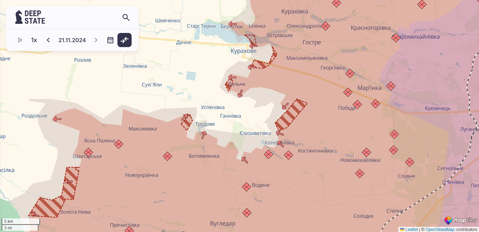 "Ворог окупував Дальнє, просунувся у Торецьку, Кураховому, біля Золотої Ниви, Пустинки, Селидового, Трудового, Антонівки та Дальнього", - йдеться в повідомленні.