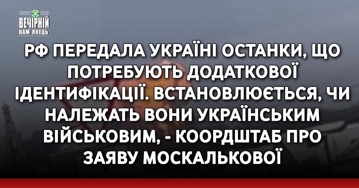 "Станом на зараз експертні установи в рамках кримінального провадження встановлюють, чи дійсно останки цих осіб належать українським військовослужбовцям. Координаційний штаб з питань поводження з військовополоненими відстежує ситуацію та знаходиться у взаємодії з усіма вповноваженими інституціями", - йдеться у повідомлення.