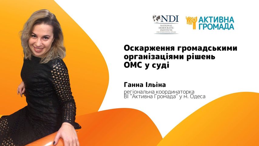 Вебінар орієнтований на членів громадських організацій, активістів, журналістів та тих, хто цікавиться темою оскарження громадськими організаціями рішень органів місцевого самоврядування у судовому порядку.