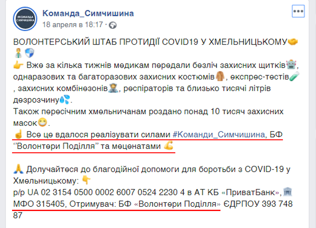 Як не дивно в дописі міської ради фігурує фонд "свободівців" – "Волонтери Поділля".