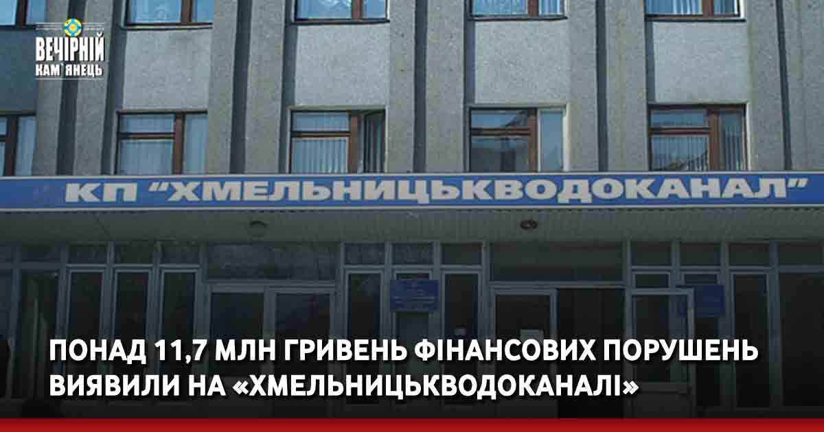 У діяльності КП «Хмельницькводоканал» аудиторами виявлено фінансові порушення, які призвели до втрат на суму понад 11,7 мільйона гривень.