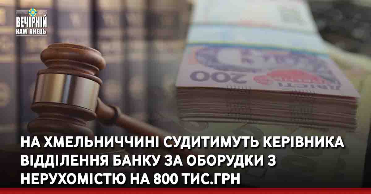На Хмельниччині завершено досудове розслідування кримінального провадження щодо керівника відділення банку за фактом незаконної оборудки з нерухомістю вартістю 800 тисяч гривень.