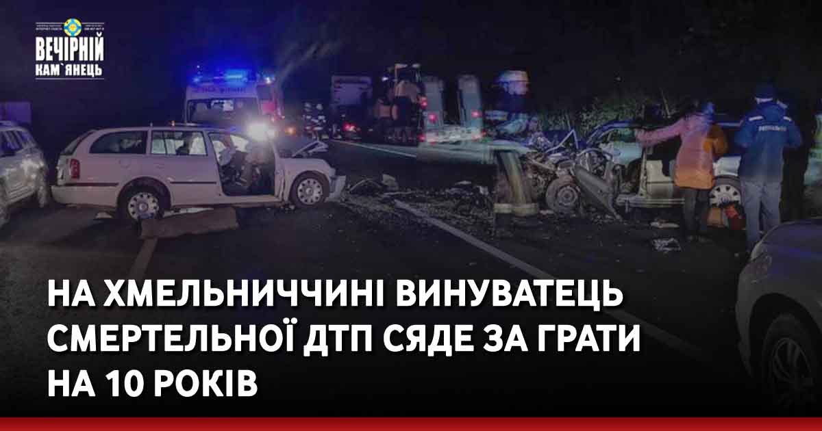 Нещодавно Ярмолинецький районний суд закінчив розгляд матеріалів кримінального провадження і визнав 34-річного хмельничанина винним у вчиненні злочину, передбаченого ч. 3 ст. 286 (Порушення правил безпеки дорожнього руху або експлуатації транспорту особами, які керують транспортними засобами, що спричинило загибель кількох осіб) ККУ і визначив йому максимальний термін покарання — 10 років позбавлення волі.