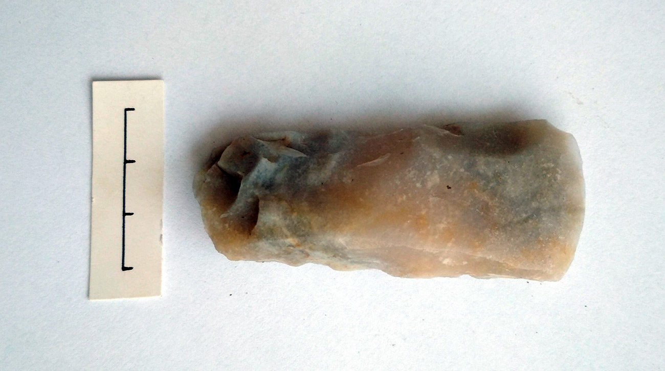 Це шліфоване крем’яне долітце, яке знайшли у заповненні слов’янської споруди, виявилося для дослідників неабиякою загадкою. Адже такий виріб могли виготовити в епоху бронзи або принаймні в ранньозалізному віці й аж ніяк не у пізніші часи. Ймовірно, долото потрапило у «слов’янську яму» випадково з давнішого шару, якщо, звісно, не було принесене на середньовічне поселення як цікавий знайдений деінде предмет – давні люди теж мали схильність до колекціонування різних незвичних дрібничок.