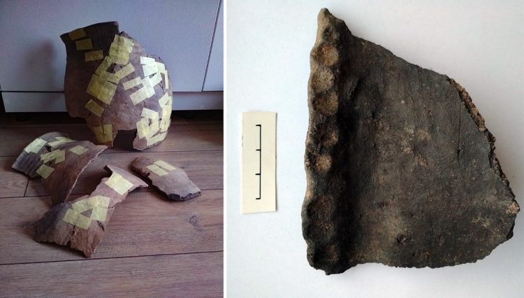 Під час дослідження однієї із заглиблених споруд, яка виявилася найдавнішою з відкритих під час розкопок, археологи знайшли досить багатий комплекс ліпної (тобто виготовленої без гончарного круга) кераміки. Вся вона фрагментована, але один великий горщик вдалося склеїти майже наполовину.