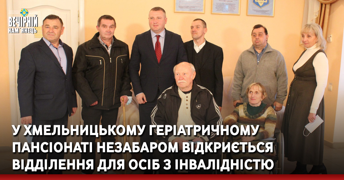 З початку 2022 року в Хмельницькому геріатричному пансіонаті заплановане відкриття відділення для осіб з інвалідністю віком до 60-ти років. Для таких людей тут забезпечено належні умови проживання, соціально-побутове та медичне обслуговування, а також денна зайнятість.