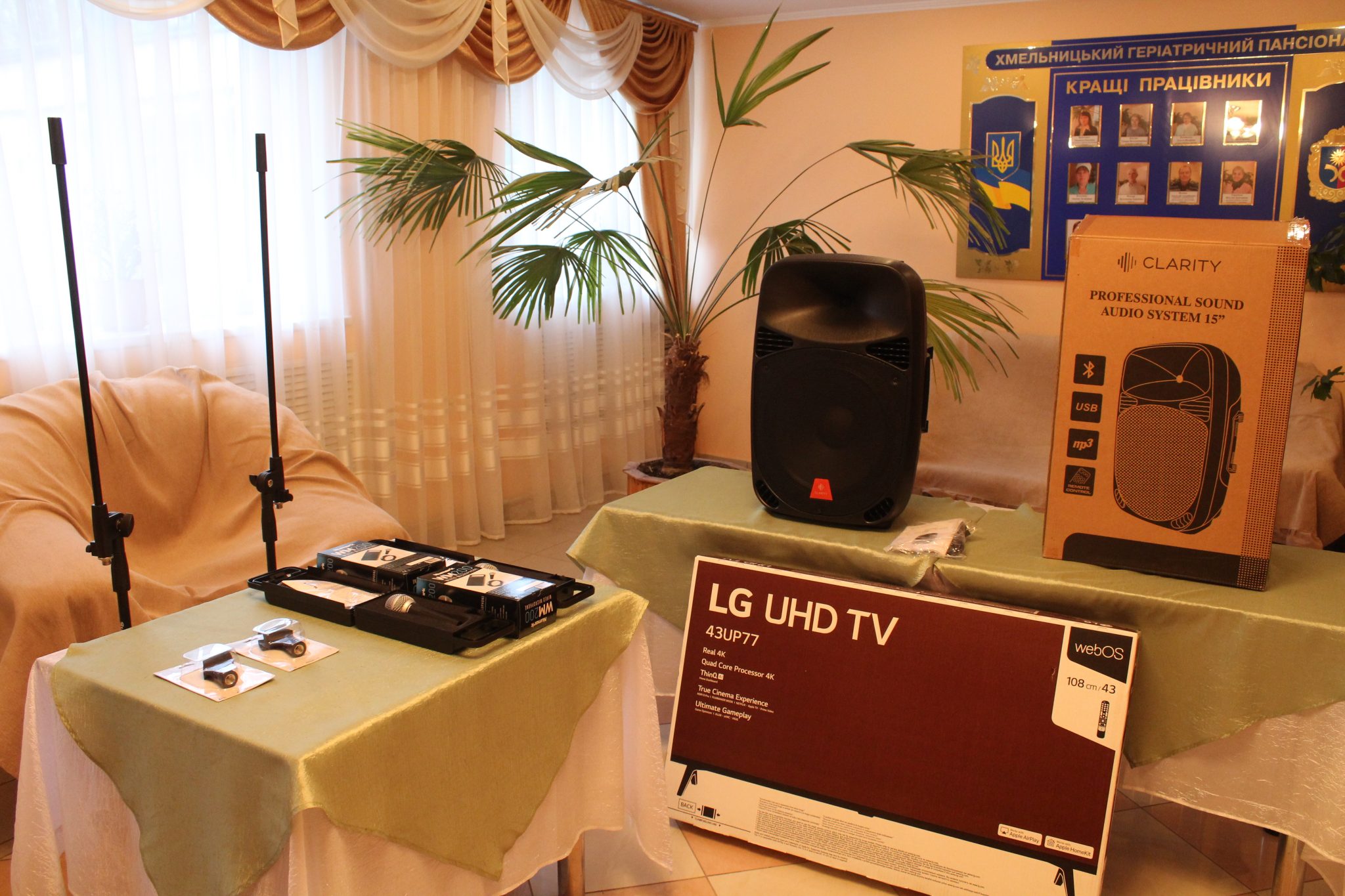 Тож для таких цілей та задля покращення матеріально- технічної бази Сергій Гамалій подарував закладу LED телевізор та активну акустичну систему Clariti, придбані в межах Обласної комплексної програми соціального захисту населення на 2021-2025 рр., аби буденне життя мешканців пансіонату трішки урізноманітнити.