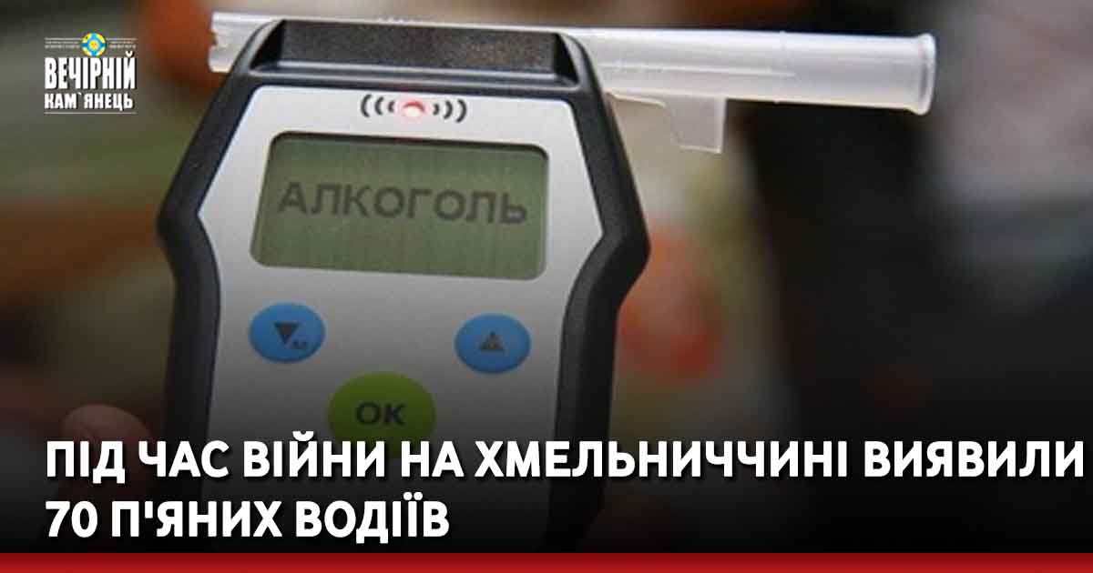 З 24 лютого по 15 квітня на Хмельниччині патрульні виявили 70 водіїв з ознаками сп’яніння: