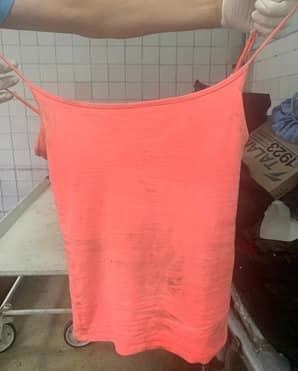 Прикмети: середньої тілобудови, на вигляд 25-30 років. Мала русяве фарбоване волосся середньої довжини, сіро-зелені очі. Була одягнена у яскраву рожеву майку на бретельках, чорні штани розміру 40, білі шкарпетки з написом «Nike» та чорно-білі кросівки. З прикрас мала ланцюжок з жовтого металу та сережки у вигляді чотирикутної зірки.