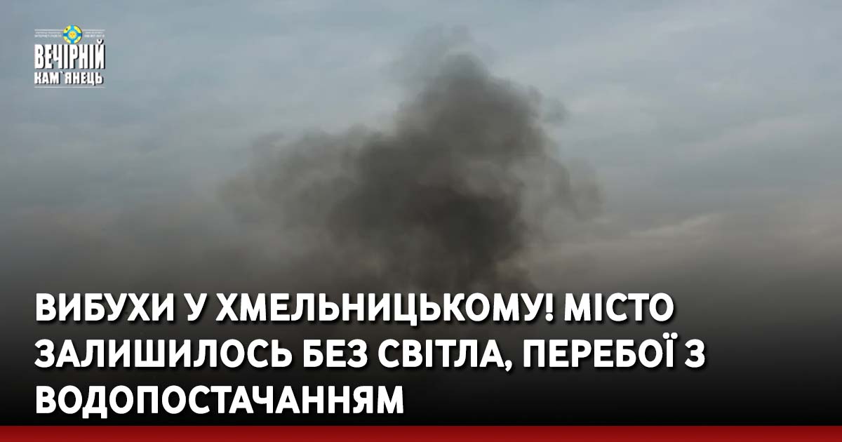 Внаслідок вибухів Хмельницький залишився без світла. Перебої з водопостачання.