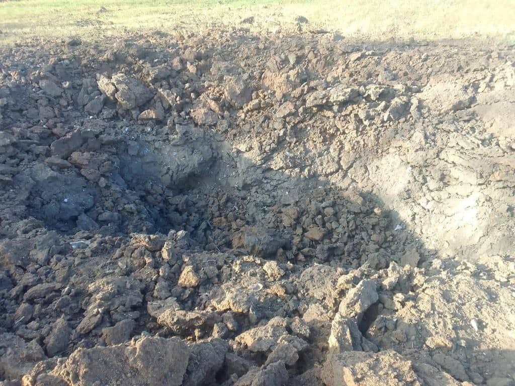 Наслідки падіння уламків ракет після вчорашнього обстрілу на фото нижче
