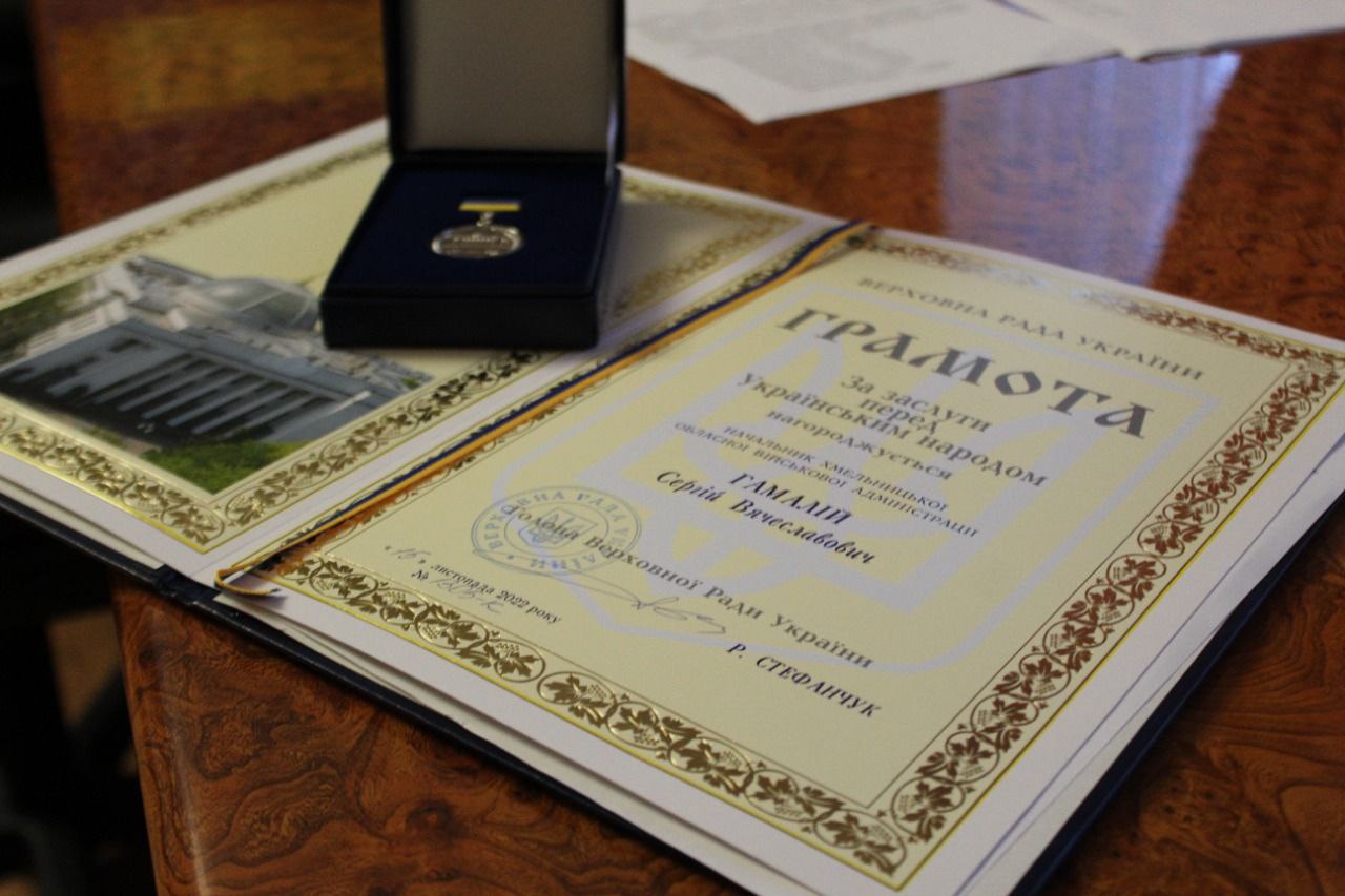 У День Збройних Сил України голові Хмельницької ОВА Сергію Гамалію народні депутати Микола Стефанчук та Володимир Ватрас вручили Грамота Верховної Ради України «За заслуги перед Українським народом».