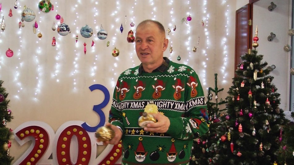 "Ви бачите, у нього навіть видно очі, носик, ротик. Як живий, скажімо так. Це 60-ті роки. Коли в людей були проблеми з їжею, пішли перці, огірки, баклажани, щоб хоча б на ялинці був достаток", — розповідає Ігор Байдак.