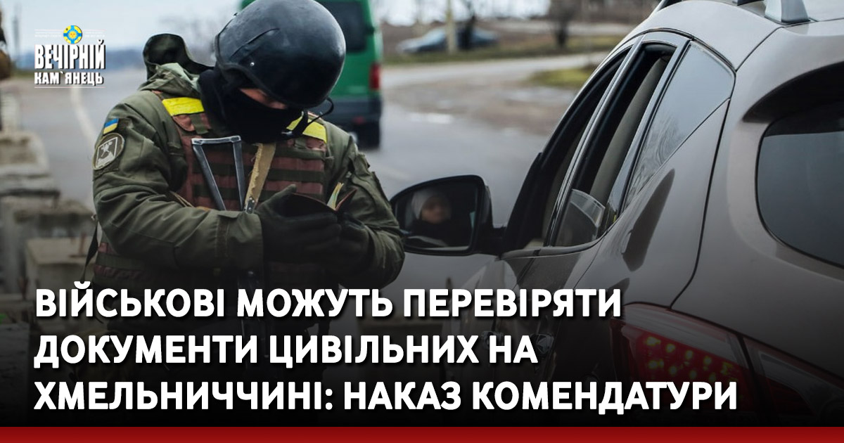 У ньому йдеться, що військовослужбовці територіальних центрів комплектування та соціальної підтримки Хмельницької області мають право перевіряти документи цивільних осіб.