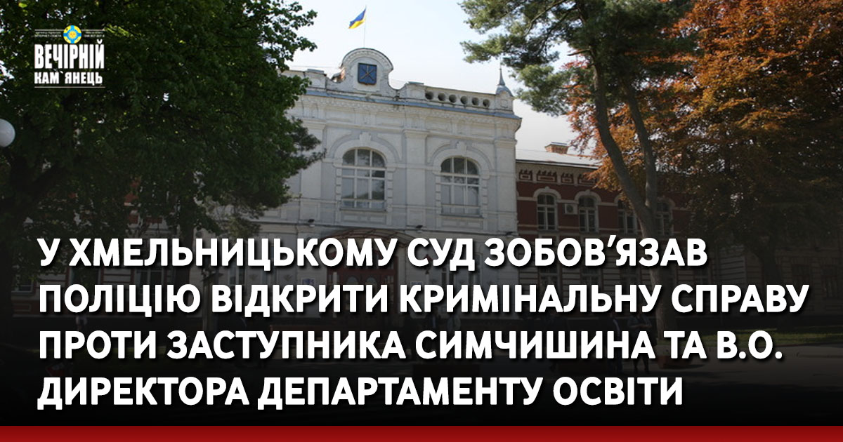 Хмельницький міськрайонний суд зобов’язав внести до реєстру досудових розслідувань відомості про кримінальне правопорушення щодо посадовців Хмельницької міської ради.